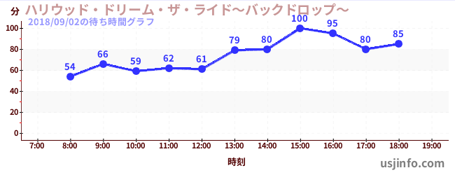 • ハリウッド・ドリーム・ザ・ライド〜バックドロップ〜$B$N(B2018年09月02日の待ち時間