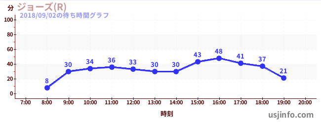 • ジョーズ(R)$B$N(B2018年09月02日の待ち時間