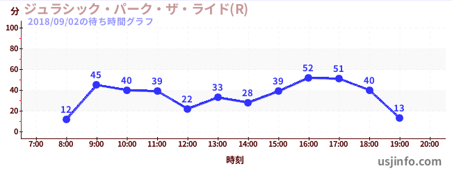 • ジュラシック・パーク・ザ・ライド(R)$B$N(B2018年09月02日の待ち時間