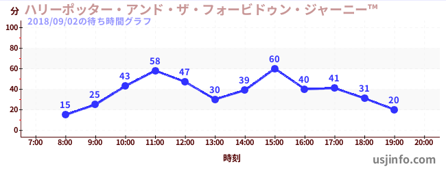 • ハリーポッター・アンド・ザ・フォービドゥン・ジャーニー™$B$N(B2018年09月02日の待ち時間