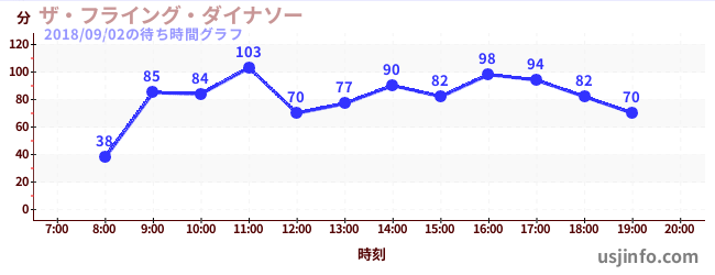 • ザ・フライング・ダイナソー$B$N(B2018年09月02日の待ち時間