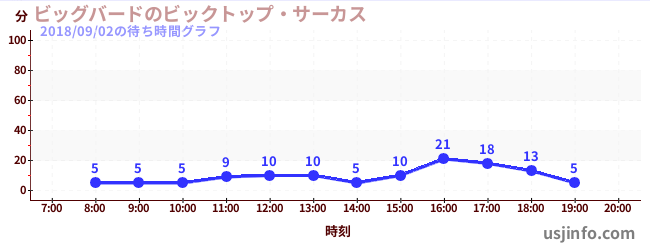 • ビッグバードのビックトップ・サーカス$B$N(B2018年09月02日の待ち時間