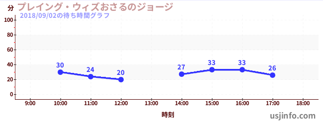 • プレイング・ウィズおさるのジョージ$B$N(B2018年09月02日の待ち時間