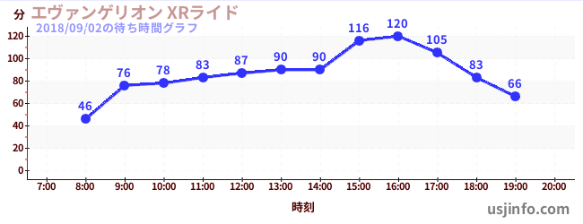• エヴァンゲリオン XRライド$B$N(B2018年09月02日の待ち時間