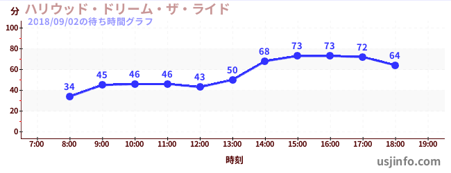 • ハリウッド・ドリーム・ザ・ライド$B$N(B2018年09月02日の待ち時間