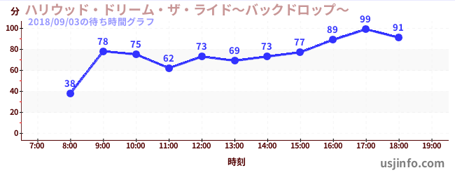 • ハリウッド・ドリーム・ザ・ライド〜バックドロップ〜$B$N(B2018年09月03日の待ち時間