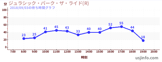 • ジュラシック・パーク・ザ・ライド(R)$B$N(B2018年09月03日の待ち時間