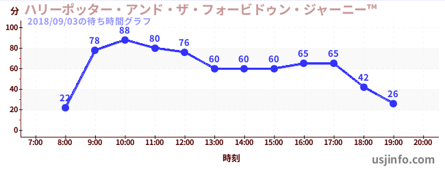 • ハリーポッター・アンド・ザ・フォービドゥン・ジャーニー™$B$N(B2018年09月03日の待ち時間