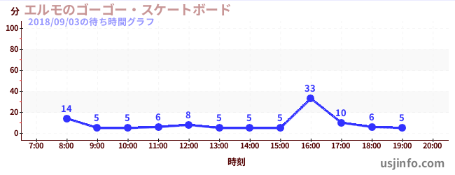• エルモのゴーゴー・スケートボード$B$N(B2018年09月03日の待ち時間