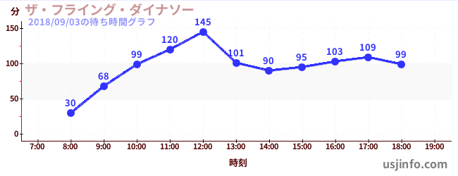 • ザ・フライング・ダイナソー$B$N(B2018年09月03日の待ち時間