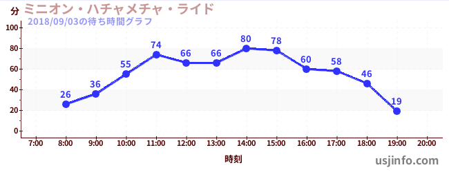 • ミニオン・ハチャメチャ・ライド$B$N(B2018年09月03日の待ち時間