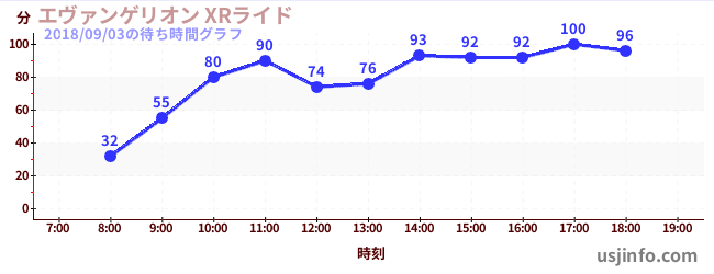 • エヴァンゲリオン XRライド$B$N(B2018年09月03日の待ち時間