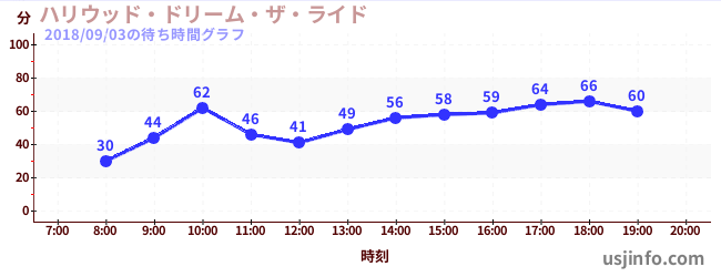 • ハリウッド・ドリーム・ザ・ライド$B$N(B2018年09月03日の待ち時間