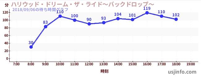 • ハリウッド・ドリーム・ザ・ライド〜バックドロップ〜$B$N(B2018年09月06日の待ち時間