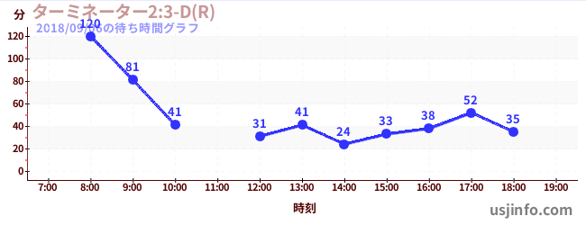 • ターミネーター2:3-D(R)$B$N(B2018年09月06日の待ち時間