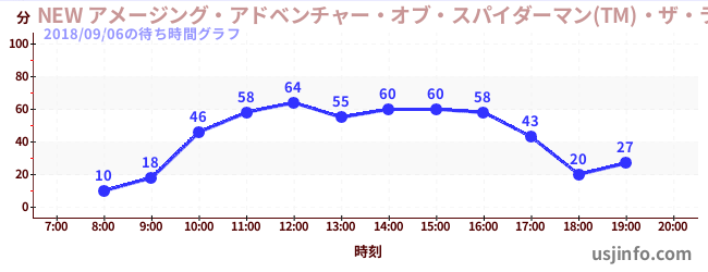 • NEW アメージング・アドベンチャー・オブ・スパイダーマン(TM)・ザ・ライド 4K3D$B$N(B2018年09月06日の待ち時間