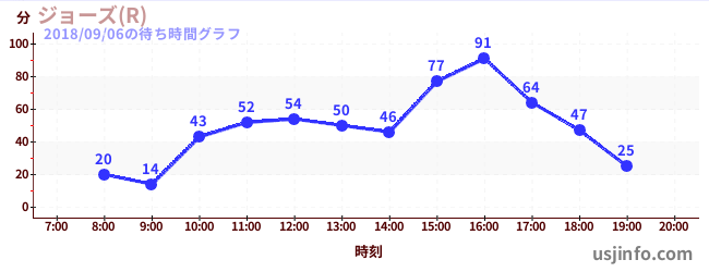 • ジョーズ(R)$B$N(B2018年09月06日の待ち時間