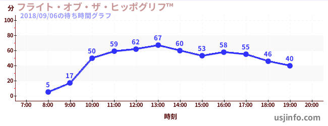 • フライト・オブ・ザ・ヒッポグリフ™$B$N(B2018年09月06日の待ち時間