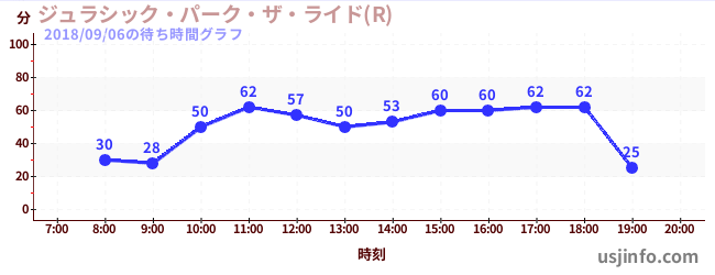 • ジュラシック・パーク・ザ・ライド(R)$B$N(B2018年09月06日の待ち時間