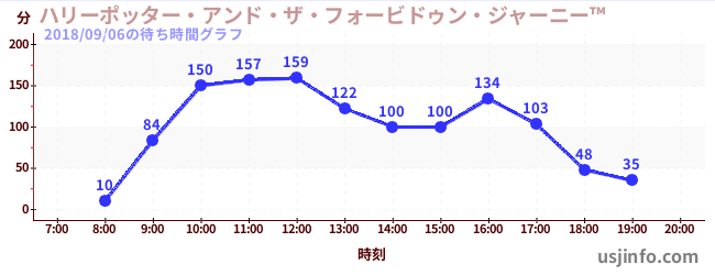 • ハリーポッター・アンド・ザ・フォービドゥン・ジャーニー™$B$N(B2018年09月06日の待ち時間