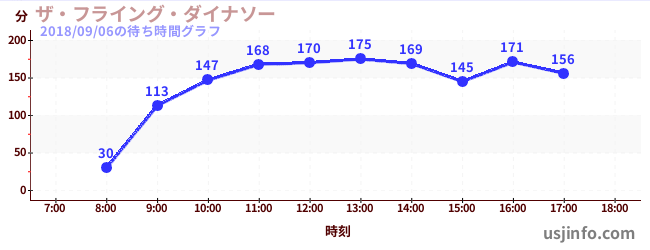 • ザ・フライング・ダイナソー$B$N(B2018年09月06日の待ち時間