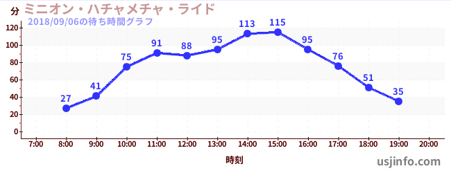 • ミニオン・ハチャメチャ・ライド$B$N(B2018年09月06日の待ち時間