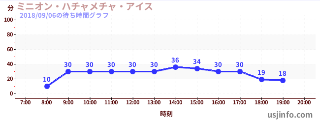 • ミニオン・ハチャメチャ・アイス$B$N(B2018年09月06日の待ち時間