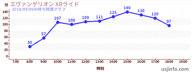 • エヴァンゲリオン XRライド$B$N(B2018年09月06日の待ち時間