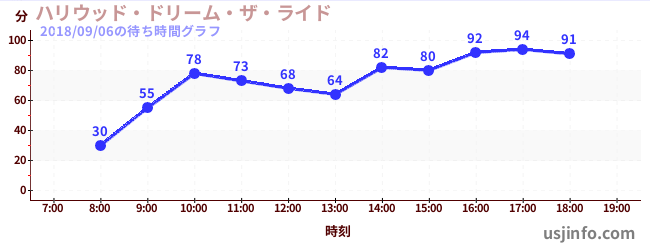• ハリウッド・ドリーム・ザ・ライド$B$N(B2018年09月06日の待ち時間