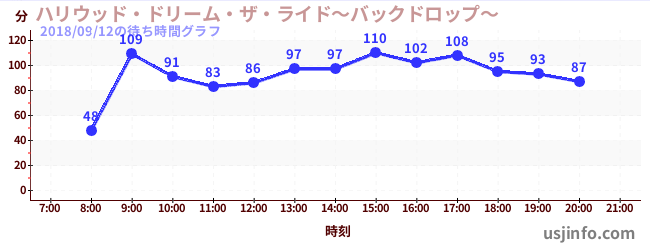 • ハリウッド・ドリーム・ザ・ライド〜バックドロップ〜$B$N(B2018年09月12日の待ち時間