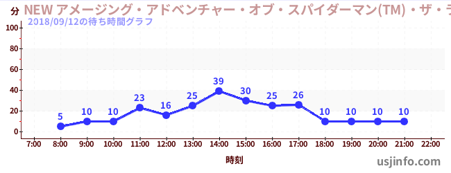 • NEW アメージング・アドベンチャー・オブ・スパイダーマン(TM)・ザ・ライド 4K3D$B$N(B2018年09月12日の待ち時間