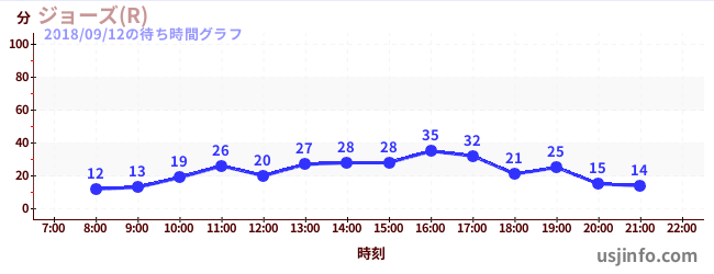 • ジョーズ(R)$B$N(B2018年09月12日の待ち時間