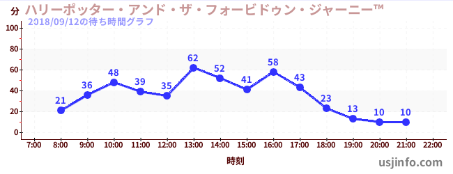 • ハリーポッター・アンド・ザ・フォービドゥン・ジャーニー™$B$N(B2018年09月12日の待ち時間