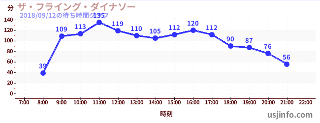 • ザ・フライング・ダイナソー$B$N(B2018年09月12日の待ち時間