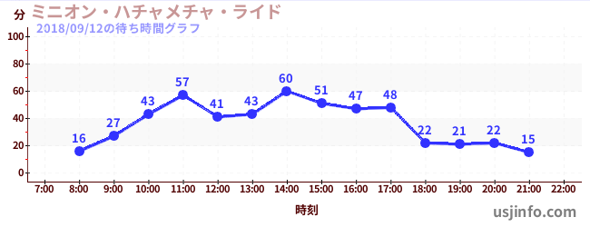 • ミニオン・ハチャメチャ・ライド$B$N(B2018年09月12日の待ち時間