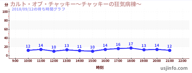 • カルト・オブ・チャッキー~チャッキーの狂気病棟~$B$N(B2018年09月12日の待ち時間