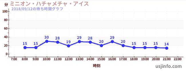 • ミニオン・ハチャメチャ・アイス$B$N(B2018年09月12日の待ち時間