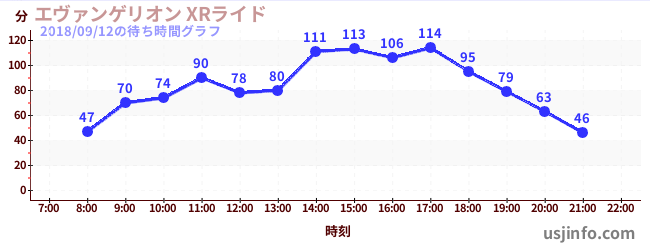 • エヴァンゲリオン XRライド$B$N(B2018年09月12日の待ち時間