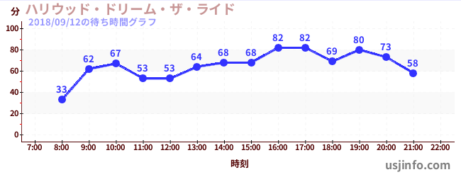 • ハリウッド・ドリーム・ザ・ライド$B$N(B2018年09月12日の待ち時間