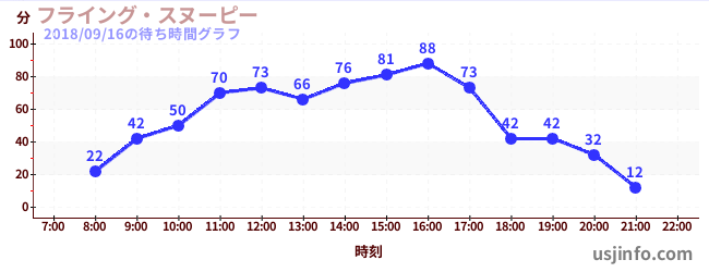 • フライング・スヌーピー$B$N(B2018年09月16日の待ち時間