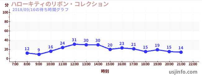 • ハローキティのリボン・コレクション$B$N(B2018年09月16日の待ち時間