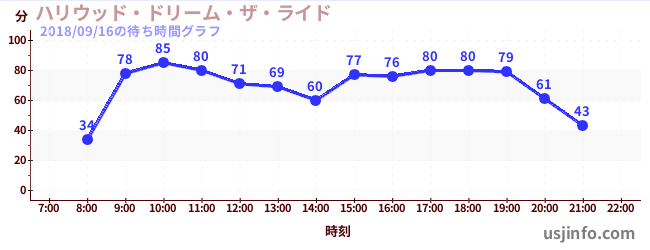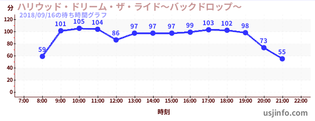 • ハリウッド・ドリーム・ザ・ライド〜バックドロップ〜$B$N(B2018年09月16日の待ち時間