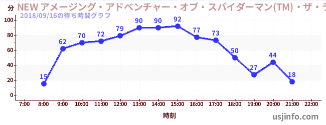 • NEW アメージング・アドベンチャー・オブ・スパイダーマン(TM)・ザ・ライド 4K3D$B$N(B2018年09月16日の待ち時間