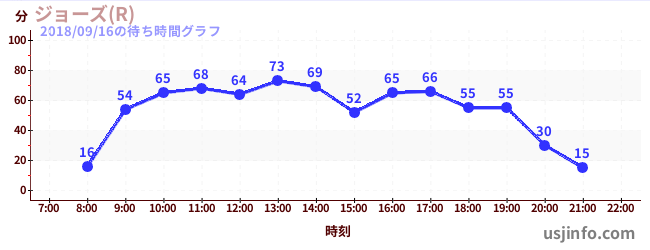 • ジョーズ(R)$B$N(B2018年09月16日の待ち時間
