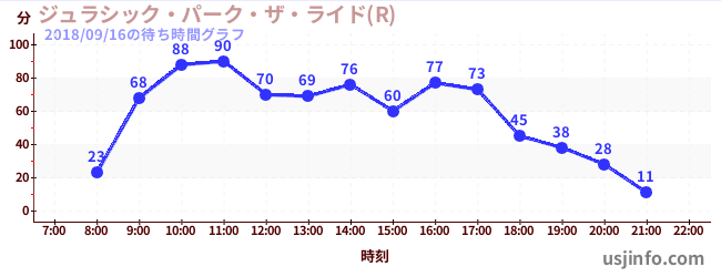 • ジュラシック・パーク・ザ・ライド(R)$B$N(B2018年09月16日の待ち時間