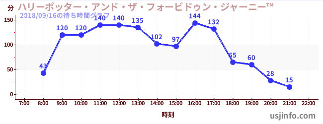 • ハリーポッター・アンド・ザ・フォービドゥン・ジャーニー™$B$N(B2018年09月16日の待ち時間