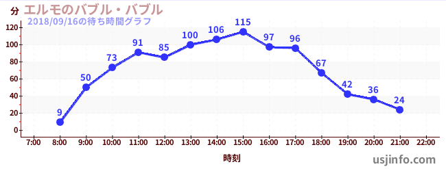 • エルモのバブル・バブル$B$N(B2018年09月16日の待ち時間