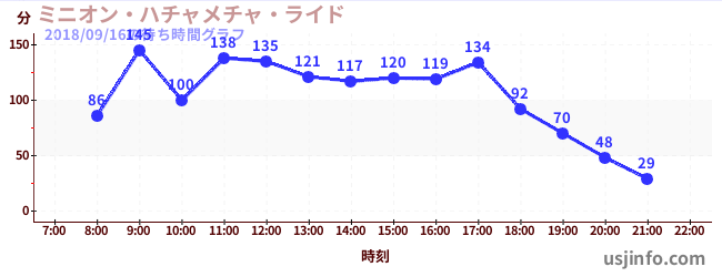 • ミニオン・ハチャメチャ・ライド$B$N(B2018年09月16日の待ち時間