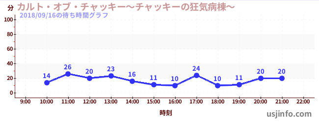 • カルト・オブ・チャッキー~チャッキーの狂気病棟~$B$N(B2018年09月16日の待ち時間