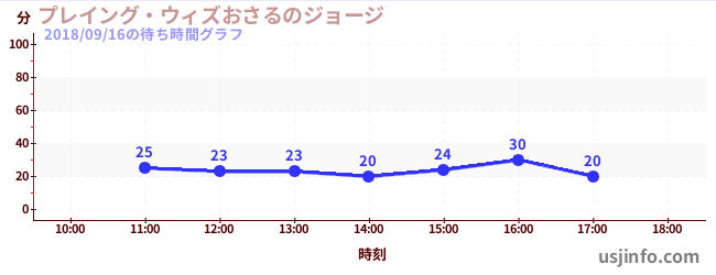 • プレイング・ウィズおさるのジョージ$B$N(B2018年09月16日の待ち時間